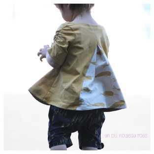 J'aime beaucoup l'encolure de ce haut mais il a tendance à descendre sur l'épaule de poucinoute du coup. Petit couack de ma part, l'élastique sur les manches. C'était une première pour moi et la longueur préconisée de l'élastique n'était pas faisable... Du coup j'ai bidouillé et je ne suis pas entièrement satisfaite mais bon j'ai encore appris des trucs alors shui contente !!!